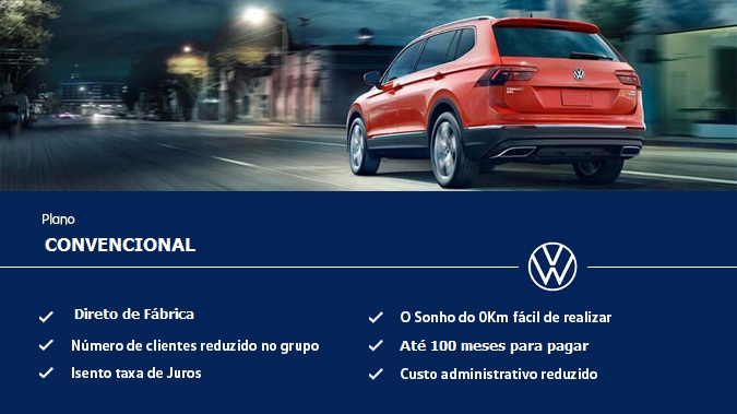 O Consórcio Nacional Volkswagen é uma das maiores administradoras de consórcio do país, é a única empresa a contar com a garantia da marca Volkswagen, além do apoio da Rede de Concessionárias Volkswagen, do momento da venda da cota até a retirada do veículo. A empresa está no mercado desde 1976 e já entregou mais de 700 mil veículos. É a tradição, comodidade e garantia da marca Volkswagen para você. Clique aqui para simular e adquirir o seu plano.